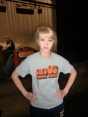 Før den aller siste forestillingen, lørdagskvelden, ba Mr. Stow alle seniorene om å fortelle om et godt minne, eller et råd eller noe i den retningen. Uææ, vi døde. Han begynte med meg. Jeg begynte å gråte etter ca. 5 sekunder, haha. Husker ikke engang hva jeg stammet frem. Til slutt bare snudde jeg meg og klemte Sarah, haha. Vi gikk rundt ringen, og folk begynte å gråte i hytt og pine. Før alle var ferdig var vi rundt i ringen og klemte hverandre, etterfulgt av "I love you." Men så var det jo showtime da. Sminken måtte fikses på, og det var vanskelig å slutte å gråte når man først var igang, men på en eller annen måte sto vi klar på scenen da gardinen? ble åpnet. Teppet? Ååh, Jesus da. The curtain.
